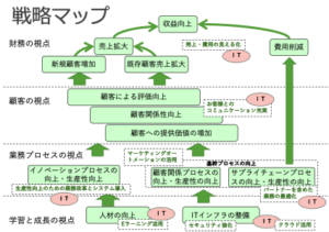 私はIT導入を考えるとき、まず社長や経営幹部にこの戦略マップを作ってもらうことをお勧めしています。